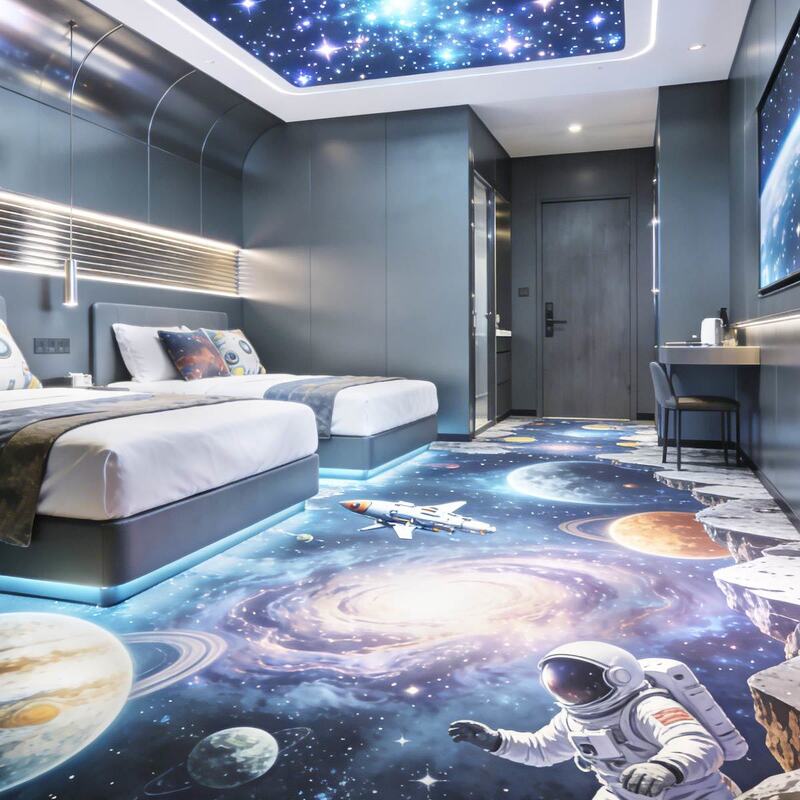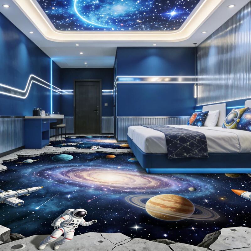 | สติ๊กเกอร์พื้น 3 มิติที่สามารถปรับแต่งได้ รองรับการออกแบบของคุณเองด้วยการพิมพ์ความละเอียดสูง มีโครงสร้างหลายชั้นเพื่อความสบายใจอ่อนโยน ทนทานการสวมใส่ และเหมาะสําหรับโรงแรม ศูนย์การค้าและพื้นที่พาณิชย์ต่างๆ. |